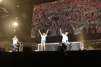 そんなオーディエンスの想いに応えるべく、ライブが始まると同時に広いステージに散ってホットなパフォーマンスを展開するメンバーの姿や巨大なLEDに映し出される多彩な映像、FUNKY MONKEY BABYSに対する愛情の深さがうかがえるオーディンスの表情など、観どころは実に多い。