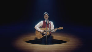 今回の『ホットペッパーグルメ』新テレビCMのシチュエーションは、ライブ会場の1コマ。観客のアンコールに応え、ライブステージ下のせりで準備を整え、“いざ登場!”というタイミングで、マネージャーが直太朗に近寄ってくる。そして耳元で、“昨日行った忘年会の会費が一人2万円だった”事実を伝え、そそくさと去っていく。予想以上の金額への戸惑いと間の悪いマネージャーへの憤り、その間も上がり始めているせり、様々な思いが交錯し、結果、ステージに登場した直太朗の目には涙が……という仕上がりだ。