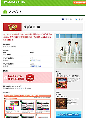 賞品:DAMオリジナル ゆず&JUJU写真 抽選10名様