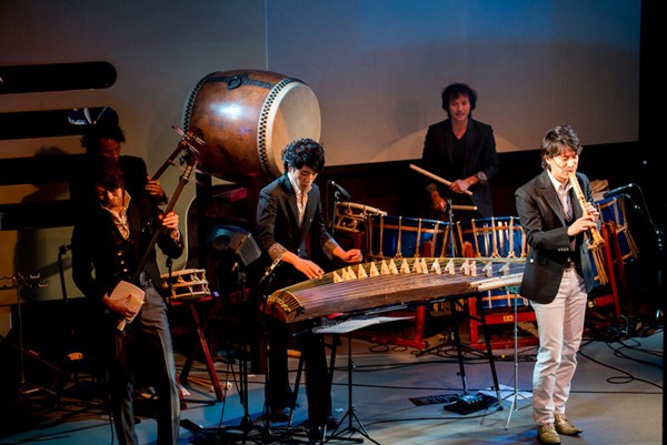 2013年11月2日、shibuya duo MUSIC EXCHANGE。若手和楽器奏者8名で構成されるAUN J クラシック・オーケストラ(以下:AUNJ)の5周年記念ライブが開催された。和楽器とライブハウス、一見ミスマッチなようだが、彼らの音はコンサート会場でもライブ会場でも楽しめる音だ。