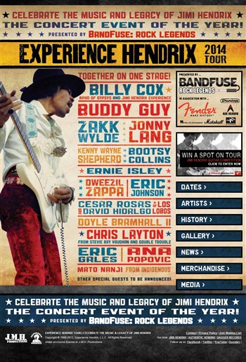 2014年春に北米で行われるジミ・ヘンドリックスのトリビュート・ツアー<Experience Hendrix 2014 Tour>のラインナップが発表された。2013年はヘンドリックスの旧友ビリー・コックスをはじめ、バディ・ガイ、ザック・ワイルド、ジョニー・ラング、ブーツィー・コリンズ、フランク・ザッパの息子ドゥイージル、ロス・ロボスのセサル・ロボス&デヴィッド・イダルゴ、エリック・ジョンソン、クリス・レイトン、女性ブルース・ギタリストAna Popovicらが出演する。