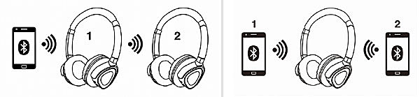 ▲オーディオサウンドをワイヤレスで手軽にシェアできるShareMe(左)とBluetooth機器を2台までの接続ができるマルチポイント接続(右)に対応。