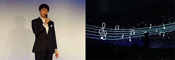 続いてプラネタリウムの製作・監修を担当した大平貴之氏。「私のプラネタリウムで、ソニーの新しい商品・サービスの門出をお手伝いできるということを、たいへん光栄に思っております。MEGASTARは、肉眼で捉えられないような星まで再現することができるプラネタリウムです。ハイレゾ音源は、数値上は人間の聴覚を超えるとされるレベルの音までこだわって再現しています。これは、運命的な出会いで、なるべくしてなったコラボレーションだと感じており、本イベントでは、今までにない世界を皆さんに体験していただけると思っております。ぜひ、この新しい世界を体験していただいて、ハイレゾ音源の魅力を世の中に広めていければと思っております」とMEGASTARとハイレゾ・オーディオのつくりだす世界観をアピールした。