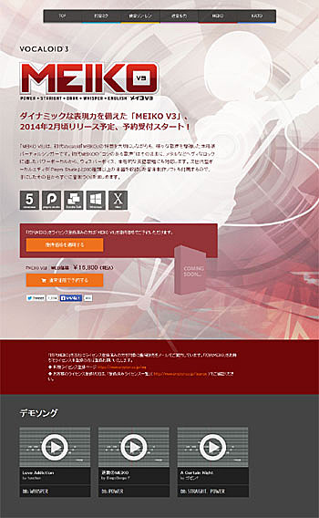 クリプトン・フューチャー・メディアは、VOCALOID3ライブラリー「MEIKO V3」(メイコV3)を2014年2月頃リリースする。現在、予約受付中だ。