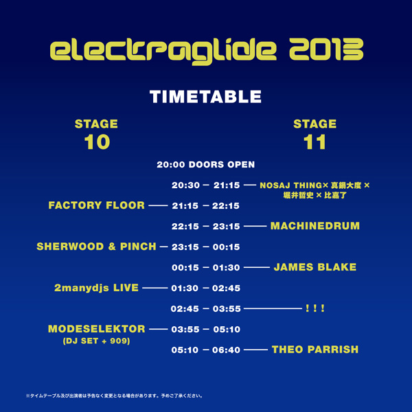 エレクトラグライド2013>、!!!(chk chk chk)の楽曲を収録した「PLAYBUTTON」を先着来場者にプレゼント