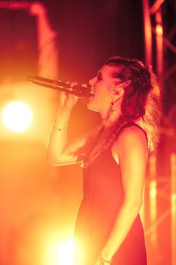 2010年にデビュー以来、フランスをはじめヨーロッパ全土で話題になった彼女だからそう多くはいなかっただろうが、もしこの夜、額面通り“ピアフ”を期待してきた人がいたとしたら、前半のパフォーマンスはちょっと驚きだったかもしれない。元気いっぱい飛び跳ねながら歌う彼女は、その姿も曲調もポップ・スター、ときにはロック・シンガーのようでさえあった。
