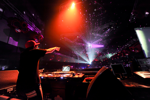今やこの音楽シーンや国境の枠さえも越えてその名が知られるようになった音楽プロデューサー・DJ kzがARENAに登場。序盤からアグレッシブなエレクトロ。音圧で壁を揺るがす勢いで、ハードに盛り上げる構え。ただ終盤には「nexus」「reunion」といった人気アニソン、そして最後はGoogle ChromeのCM曲としても有名になったアンセム「Tell Your World」で締めくくった。大きなスクリーンでの同曲のミュージックビデオもまた圧巻であった。