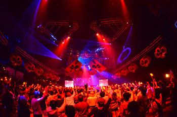 身動きが取りづらくなる程の人を集め、ARENAでプレイするのはDJ WILDPARTY。散弾銃のように降り注ぐ音と光にARENAのボルテージは最高潮。選曲、繋ぎはもちろんだが、とりわけサウンドのチューニングが絶妙で迫力があった。