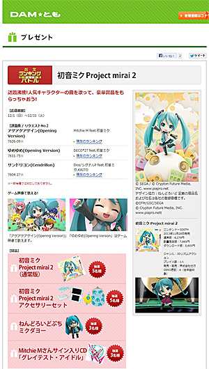 <DAM★とも×初音ミクProject mirai 2 プレゼント企画 概要>