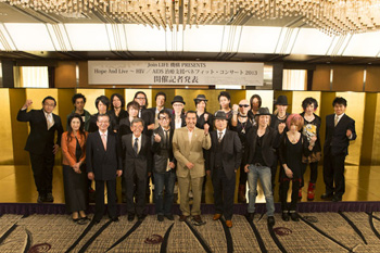 「アーティストの力を結集し、エンターテイメントイベントによるHIV/AIDSの啓蒙活動及び新薬開発への寄与による撲滅を目指す!」という想いを旗印に、みずからもHIV/AIDSキャリアであるミュージシャンのHAL(SPEED iD)始動のもと立ち上がった「Join LIFE機構」。同機構は8月26日~28日に川崎クラブチッタを舞台に<HIV/AIDS治療支援ベネフィットコンサート>を開催。9月8日には、皇居をコースに<アキバ☆エンタメマラソン2013年大会>を実施。コンサートには、河村隆一(LUNA SEA)、SUGIZO(LUNA SEA/X JAPAN)、栄喜(SIAM SHADE)他、総勢31組のアーティストが。マラソン大会には、猫ひろし、川内鮮輝、CANDY GO!GO!、asfi他、多数のゲストランナーが参加。募金活動を行いながら、HIV/AIDSの現状に対する啓蒙活動や、このイベントの趣旨を、大勢の人たちに伝える役割を担ってくれた。