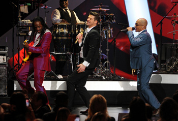 会場をロサンゼルスのノキア・シアターに戻し開催された今回のノミネーションコンサートは、MCにはおなじみのLL・クール・Jが登場、年間最優秀アルバムにもノミネートされたマックルモア&ライアン・ルイスのオープニングパフォーマンスで開幕となった。海外からはテイラー・スウィフトとケイティ・ペリーが登場し、オーストラリアから参加のテイラーは、パフォーマーを引き連れて純白のドレスで登場。豪華なパフォーマンスで盛り上げる中、ドレスが破られセクシーな黒い衣装にステージ上でチェンジすると、会場は最高潮の盛り上がりをみせた。ケイティはカナダからの参加となった。