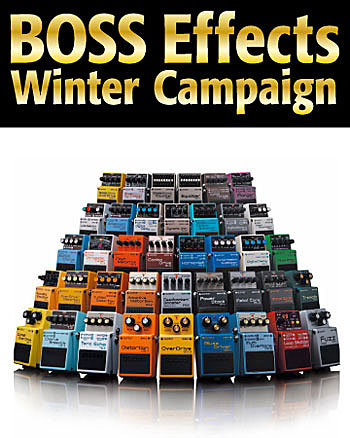 ボスではこの冬、「BOSS Effects Winter Campaign 2013-2014」と題したギター/ベース用コンパクト・エフェクターのキャンペーンを実施中だ。