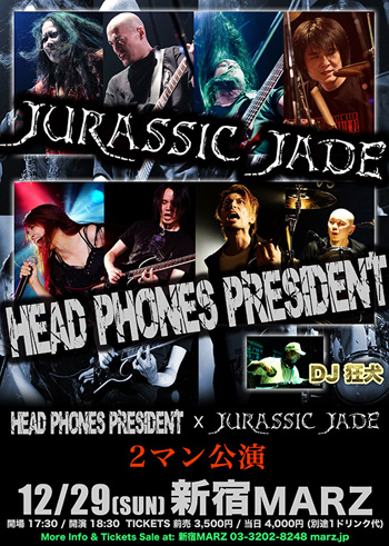CHINA TOURから帰国後12月29日には、HEAD PHONES PRESIDENT と JURASSIC JADE のツーマンライブを新宿MARZで開催する。