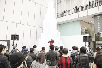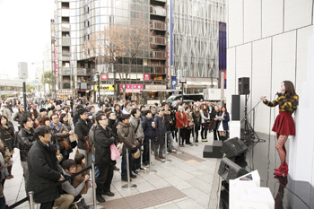 12月8日(日)、銀座ソニービル1F屋外イベントスペース「ソニースクエア」で開催中のチャリティ募金イベント<第46回愛の泉>に安田レイが参加、新曲「Let It Snow」を披露した。