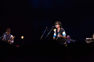 「ありがとうございます!」とここでMC。この「JAM ADDICT」の趣旨、ミュージシャン同士が何も決めず、ただお互いの反応に呼応しながら演奏していく「ジャム・セッション」を、自らが尊敬するアーティストと共に紡いでいく、という趣旨を説明した後、「まさか、一緒に出来るとは、という方をお招きしました。スガ シカオ!」とスガ シカオを呼び込む。スガが笑顔で登場、軽妙な掛け合い(森は恐縮しっぱなし、スガがそれに突っ込むという)MCで会場はさらに沸く。実に暖かい空気が流れていた。