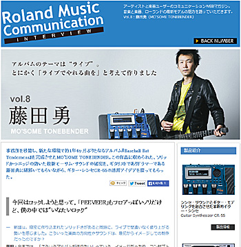 ローランド「Roland Music Communication」Vol. 8インタビューにMO’SOME TONEBENDER 藤田勇が登場