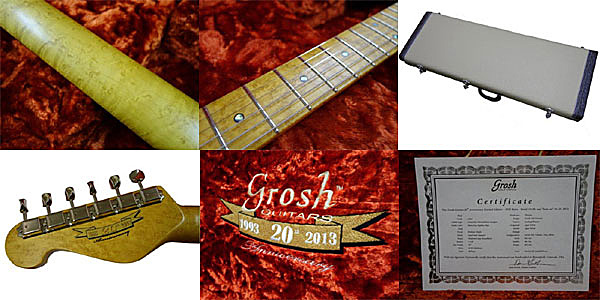 今回発売される20周年記念モデルは、ドン・グロッシュ氏のプライベートストックにあるAAAAAバーズアイメイプルネックを使用し、特徴的な美しいアバロンの限定ブルズアイポジションマーク、20周年記念ヘッド裏ロゴを採用したオリジナルスペックのギター。付属品として20周年記念刺繍入りカスタムハードケースと20周年記念認定証が付属する。