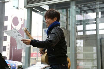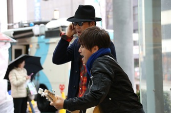 アコースティックによる2人でのパフォーマンスは初となった「今、咲き誇る花たちよ」では、間奏で小渕が「サイコー!」と絶叫した。当初、「20人くらい集まればすごくいい」と言っていた2人だったが、実際にライブが始まり、その歌声を聞いた人が、1人また1人と集まりはじめ、結果ライブが終わるころには20人どころか200人を超す大きな人だかり。それに気が付いた2人は、ラストナンバーとなった「桜」の大合唱に、大感激の表情を浮かべていた。また、前列で見ていた方からは「寒ブリがおいしいわよ」と教えてもらい、お土産に寒ブリを買って帰ったとか。