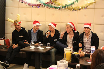 メンバー全員の端正なルックスと高い歌唱力で、日本でも人気急上昇中の欧州発5人組ボーイズ・グループのザ・ユナイテッド。ファーストジャパンツアーのために来日した彼らは、12月17日の大阪から福岡、名古屋、東京と主要都市を駆け巡って列島を縦断し、各地で“ユナイター”と呼ばれるファンの熱い視線を集めた。そしてその過密な日程の中、12月20日には都内でクリスマスパーティを開催。ファンとともに、東京で一足早いクリスマスを楽しんだ。