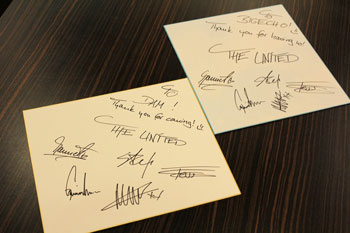 それほど広くはないカラオケルームだから、ザ・ユナイテッドとユナイターは、生の歌声が聴こえるほど、本当に至近距離。間近で見るアイドルの姿に黄色い歓声も上がったが、さすがのユナイターもあまりの距離の近さに戸惑っているようで、どう盛り上がってよいか迷っているような雰囲気も感じられた。しかしそれは最初だけ。メンバーがファンに直接訴えかけるように歌うと、徐々に緊張がほぐれ、次に歌った彼らのデビュー曲「Stay Young」では想いが爆発したかのように大熱狂。全員が立ち上がって手を挙げ、ジャンプしながらの大合唱となった。