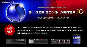 今回のキャンペーンは、「Singer Song Writer 10 Professional」、「Singer Song Writer 10 Standard」のパッケージ版を期間中に購入し、ユーザー登録をすると素敵な商品をもれなくプレゼンするというもの。