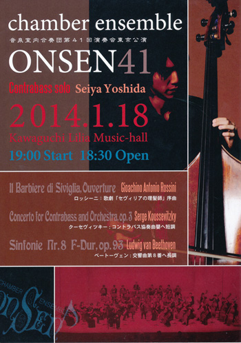 「コントラバス協奏曲 嬰ヘ短調」はダイナミック・レンジの広いオーケストラの中で重厚な低音が優雅に響く、美しくも荘厳な曲だが、この曲を、どのように奏でいかに聞かせるか。全編、超低音から高音まで、技巧的なパッセージを必要とされる難曲に挑む吉田聖也の低音美旋律に期待がかかる。