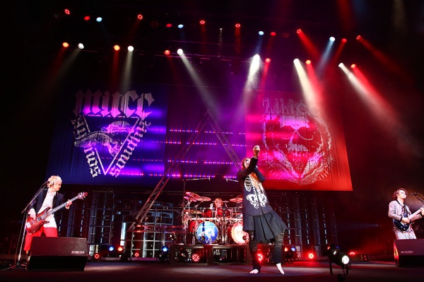 ミヤの煽りにオーディエンスが拳を上げて応えた。「You&I」「Mr.Liar」と極悪で重圧のかかる音で会場を揺らし、本編ラストは「MAD YACK」。爆音が鳴り響く中、逹瑯は振り絞るようにシャウトをかまし続け、ミヤとYUKKEは会場を左右に走り回ってオーディエンスを楽しませた。