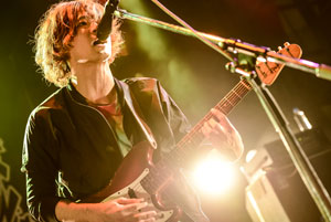 3番目に登場したSAPPYは、“HAPPY&SAD=SAPPY”というバンド名を掲げて、“ちょっと涙の出そうになる音楽”を目指す神戸の4ピースバンド。元気でガーリーなヴォーカルや今ドキの女の子らしい素直な歌詞など、パッと見た感じでは可愛らしさがウリのポップバンドのようだが、ブリブリのベースラインやシューゲイズギター、和メロを活かした切ないシンセのフレーズなど、音楽的な素養の高さもうかがい知ることができる。紅一点のボーカル・佐藤咲希がステージ前方まで乗り出し、マイクをフロアに向けるシーンが何度もあったのが印象的だったが、お客さんを巻き込んで楽しませたいという貪欲なショウマンシップを強く感じることができた。そんなバンドの本性が垣間見えたのが、3曲目の「Ivy」。ポップな曲調から一転、間奏で「思い思いに体を動かしていこう!」と言いながらディープなジャムセッションを繰り広げ、その豹変ぶりには目を見張るものがあった。いろんな意味で記名性の高さとキャラクターを感じさせる強いポップバンドだった。