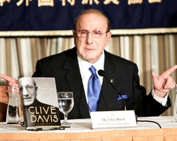 ジャニス・ジョプリン、ホイットニー・ヒューストン、アリシア・キーズなど数多くのスターを契約・育成し、現在米ソニー・ミュージックエンターテインメントのCCOを務める伝説的音楽プロデューサーのクライブ・デイヴィスが38年ぶりに来日し、2013年12月19日(木)に日本外国特派員協会にて記者会見を行った。