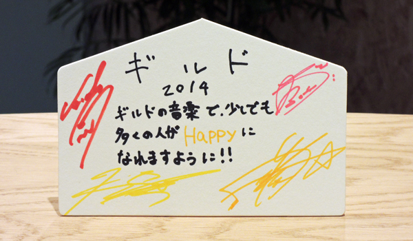 関西在住ヴィジュアル系ロックバンド、ギルドはゴールデンボンバーの後輩バンドとしても知られている。後輩なのにバカテクできちんと演奏できることで、先輩とは一線を画したコンセプトと音楽を形作っている。そいういうちゃんとした一面が、このメッセージからもうかがい知れる。何という真面目で志の高いメッセージだろう。ちなみに、ゴールデンボンバーのメッセージは、「メリークリスマス!」…。