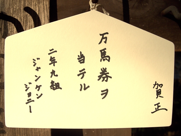 本気で願掛けにいっている……さすがの究極生命体でもやはり万馬券を取るのは難しいのか。あと、縦書きで文字が渋カッコイイですね。