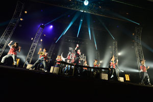 MCのあとは、今回のツアー<丞昇薔薇ノ気流>で会場限定発売しているシングル曲 「Firebird」。 アジテーションとヘドバンで始まるスピードチューンだが、途中でスカのリズムになったり、沖縄音階が取り入れられていたりする個性的な曲だ。そして、エンディングに向けて加速するかのように、アップテンポの楽曲が立て続けに演奏される。「super special summer」、「恋する日曜日」とポップなダンスナンバーのあと、スカとハードとポップのミックスが心地よい「虚無感協奏曲」で、彼らは会場を最高のテンションにして、本編を締めくくった。