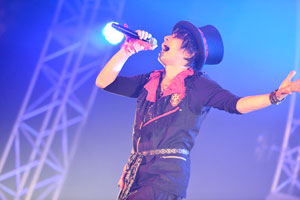 MCのあとは、今回のツアー<丞昇薔薇ノ気流>で会場限定発売しているシングル曲 「Firebird」。 アジテーションとヘドバンで始まるスピードチューンだが、途中でスカのリズムになったり、沖縄音階が取り入れられていたりする個性的な曲だ。そして、エンディングに向けて加速するかのように、アップテンポの楽曲が立て続けに演奏される。「super special summer」、「恋する日曜日」とポップなダンスナンバーのあと、スカとハードとポップのミックスが心地よい「虚無感協奏曲」で、彼らは会場を最高のテンションにして、本編を締めくくった。