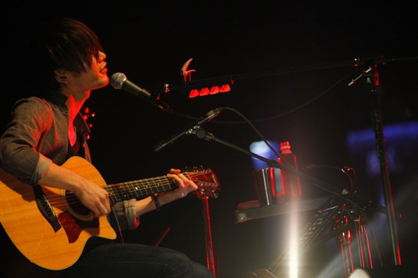 続けて披露された2曲は、凛として時雨の「テレキャスターの真実」と「鮮やかな殺人」。12弦アコースティックギターの弾き語りによる前者は、ふくよかで奥行きのあるコードストロークにのせて優しいボーカルを聴かせる。一方の後者は6弦ギターに持ち替え、アルペジオと鋭利なカッティングのダイナミズムで弾き語られた。どちらの楽曲からも際立ったのはメロディの美しさ。当然ながら轟音のアンサンブルもなければ、音数の洪水のようなサウンドもない。弾き語りのシンプルなアレンジは良質なメロディそのものをクリアに浮かび上がらせたようだ。