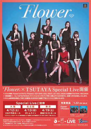 TSUTAYAのCD販売取扱店「TSUTAYA RECORDS」にてFlower 1st Album『Flower』をお買い上げのお客様の中から抽選で合計1,650名様をご招待。