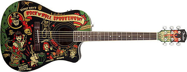 ◆Fender Acoustics Hot Rodシリーズ「T-Bucket 300CE」にキルト・アッシュとド派手なガイコツ柄「Vince Ray Voodoo」登場