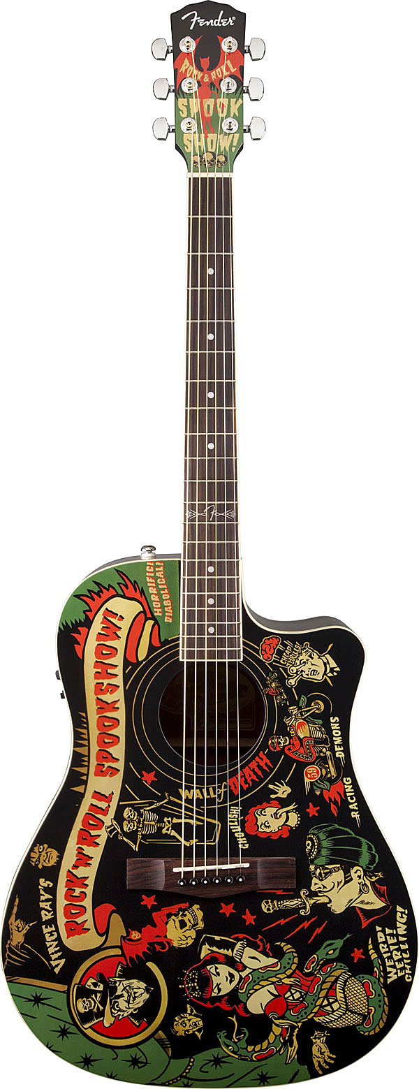 フェンダーHot Rod Design SeriesにVince Rayデザインの不気味なモデル再び、サーカスを描いた「Vince Ray Spook Show T-Bucket」