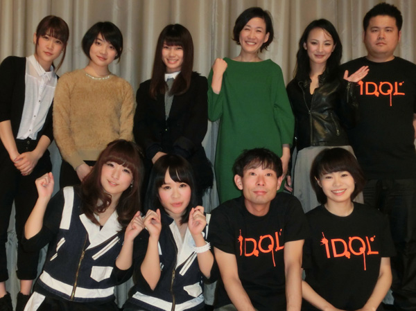 1月11日(土)より公開となった映画『アイドル・イズ・デッド -ノンちゃんのプロパガンダ大戦争-』の舞台挨拶が開催され、BiS(プー・ルイ、ヒラノノゾミ)、三浦透子、柳英里紗、金子沙織、國武綾、大島葉子、三輪ひとみ、水澤紳吾、加藤行宏監督と総勢10名のキャスト・スタッフが勢ぞろい、立ち見席も含めチケットは完売し大盛況となった。