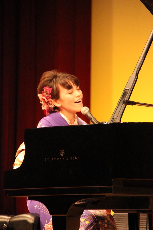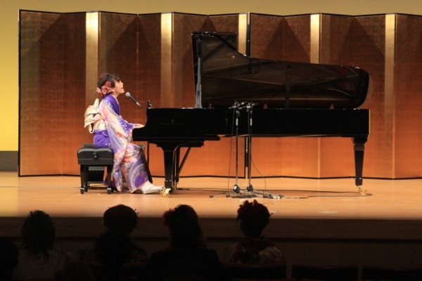 井手綾香20歳、成人式にて振袖姿でピアノ弾き語り