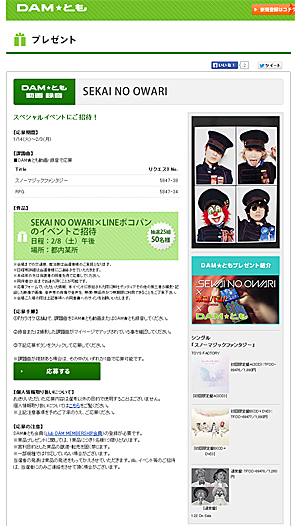 ◆DAM★ともプレゼント企画 SEKAI NO OWARI