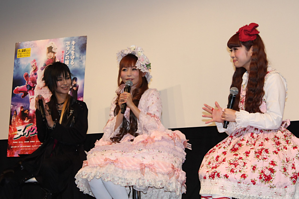 主演・中川翔子、原作・大槻ケンヂ、キャラクターデザイン・鶴巻和哉/コヤマシゲトなど、豪華クリエイター達が参加している『ヌイグルマーZ』。劇中で中川翔子演じる夢子(通称:ダメ子)がまとうロリータファッションも上映前から話題になっていたが、この日はロリータファッションにフィーチャーしたイベントということで登壇した3人がロリータファッションに身を包み、また観客も全てロリータファッションに身を包んでの壮観なイベントとなった。