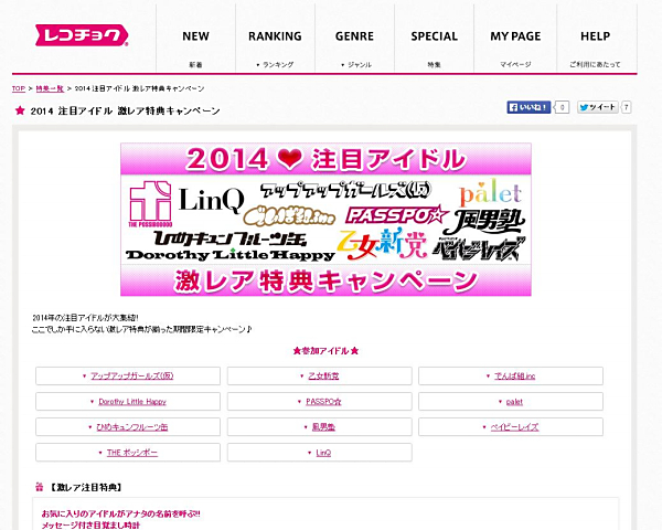 1月22日より、レコチョクにて「2014 注目アイドル 激レア特典キャンペーン」が開始された。