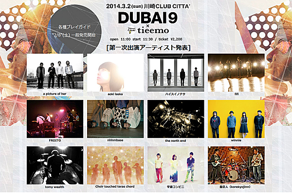 今回は<DUBAI9 × tieemo>というスペシャルな企画となり、2013年11月に所沢航空記念公園にて開催された<tieemo>と共同主催で行われることになった。