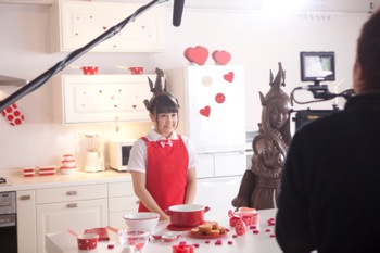また、メンバーのほとんどが自分一人でチョコレートづくりをするのは初めての体験で、撮影には“とっても楽しみ!”と意気揚々でチョコ作りに臨んだ。撮影中は、苺が上手く飾り付けられず、照れ笑いを浮かべたり、完成したチョコレートを満足気に見せようとして崩してしまうなど、彼女たちらしい可愛らしい一面も。ほんのり漂うチョコレートの甘い香りの中、メンバーは終始笑顔だったとのことだ。