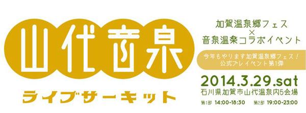 プレイベントとして山代温泉にて山代温泉通り商店街振興組合、山代温泉観光協会、NPO法人湯会(音泉音楽)とタイアップして、<加賀温泉郷フェス×音泉音楽コラボイベント 山代音泉ライブサーキット>が3月に開催されることになった。