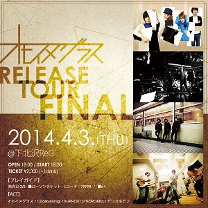 2014年1月15日(水)に、2nd mini album『コラージュとして切り取られ、残された側』をリリースしたオモイメグラスが、2014年4月3日(木)下北沢ReGでリリースツアーファイナルを開催する。