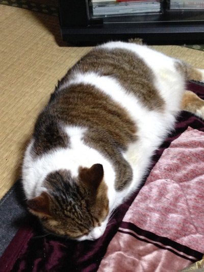 わーびっくりした!丸太ん棒かと思ったら実家の猫(チロ)でした。太ったなあお前。危うくタキギにしちゃう所だったぞ。という感じでたくさん初詣に言った激甘貴公子の正月休みも中々有意義でございました。