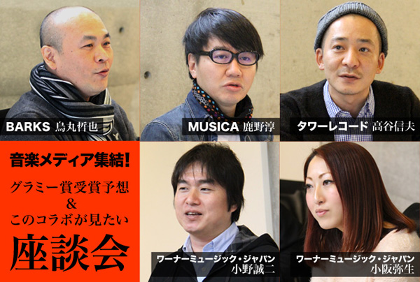 第56回グラミー賞授賞式を前に、日本最大級の音楽情報サイト『BARKS』の烏丸哲也、音楽専門誌『MUSICA』創刊者で音楽ジャーナリストの鹿野淳、タワーレコード株式会社で長年グラミー賞のプロモーションに携わってきた高谷信夫、多くのグラミー賞ノミネーションアーティストを抱え、今年度のコンピレーションCD『2014 GRAMMY(R)ノミニーズ』発売元のワーナーミュージック・ジャパン株式会社で同作品のプロダクトマーケティングを担当した小野誠二、小阪弥生ら、日本の音楽シーンをけん引するメディアが集結して、座談会を開催。