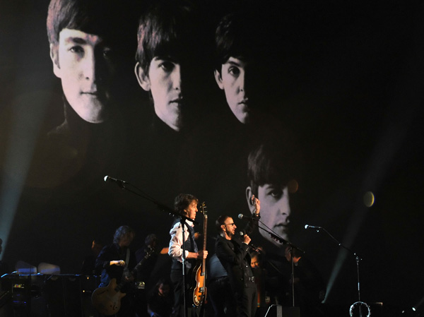 スティーヴィー・ワンダー、ジョー・ウォルシュ(イーグルス)、ユーリズミックス、デイヴ・グロール(フー・ファイターズ)、マルーン5、アリシア・キーズ、ジョン・メイヤー、キース・アーバン、ジョン・レジェンド、イマジン・ドラゴンズ、ケイティ・ペリー、ファレル・ウィリアムス、エド・シーランなど名だたるグラミーアーティストがビートルズの楽曲を演奏し、さらに、ポール・マッカートニー、リンゴ・スターの共演が実現した。ラストを飾った曲は「Hey Jude」。この曲を2人が一緒に演奏するのはザ・ビートルズ解散以降初めてのことだった。