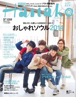 B1A4が、2月13日に発売されるHanako「おしゃれソウル2014」特集の表紙に登場することが明らかになった。誌面では巻頭特集16ページに渡りソウルの魅力を伝えている。